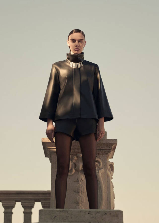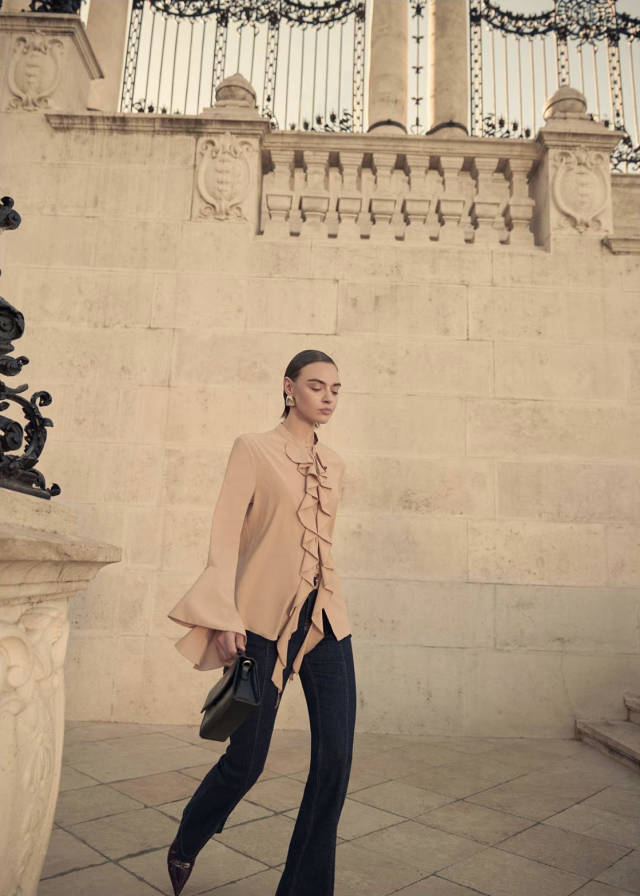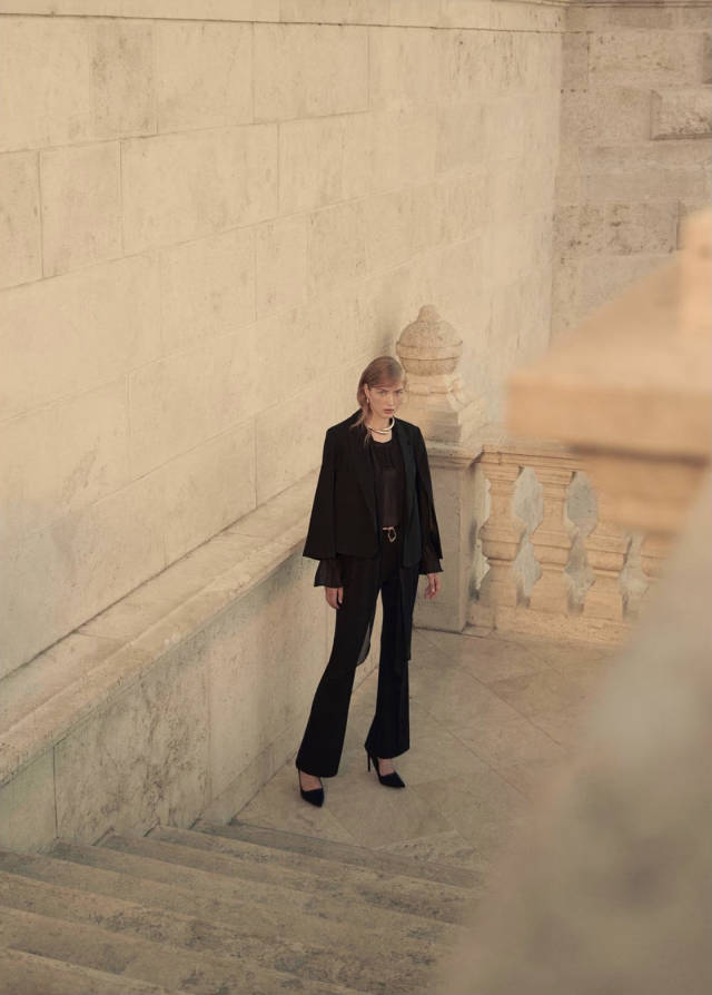 One of the main reasons many productions choose Budapest is its grand turn-of-the-century architecture. This visual character proved to be an ideal match for the “Evento Serale” theme, which highlighted the collection’s more elegant pieces. The theme also made use of the Danube as a defining backdrop, together with the city’s classic metal bridges and natural colour palette that aligns well with typical fall tones.