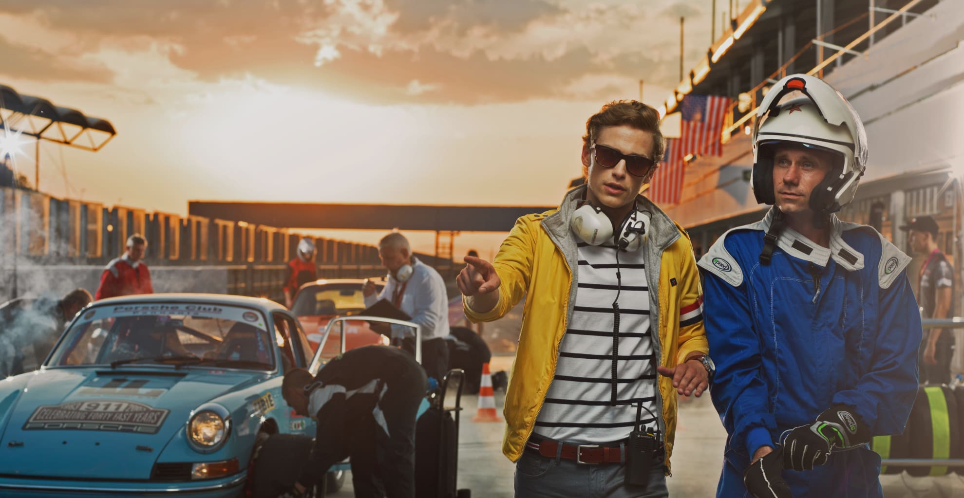 We could start preparing for the shoot only after the races, therefore we had just 3 hours until sunset. We built a whole set, got the vintage cars and the performers in, arranged the props, and shot the whole thing all in these few hours.